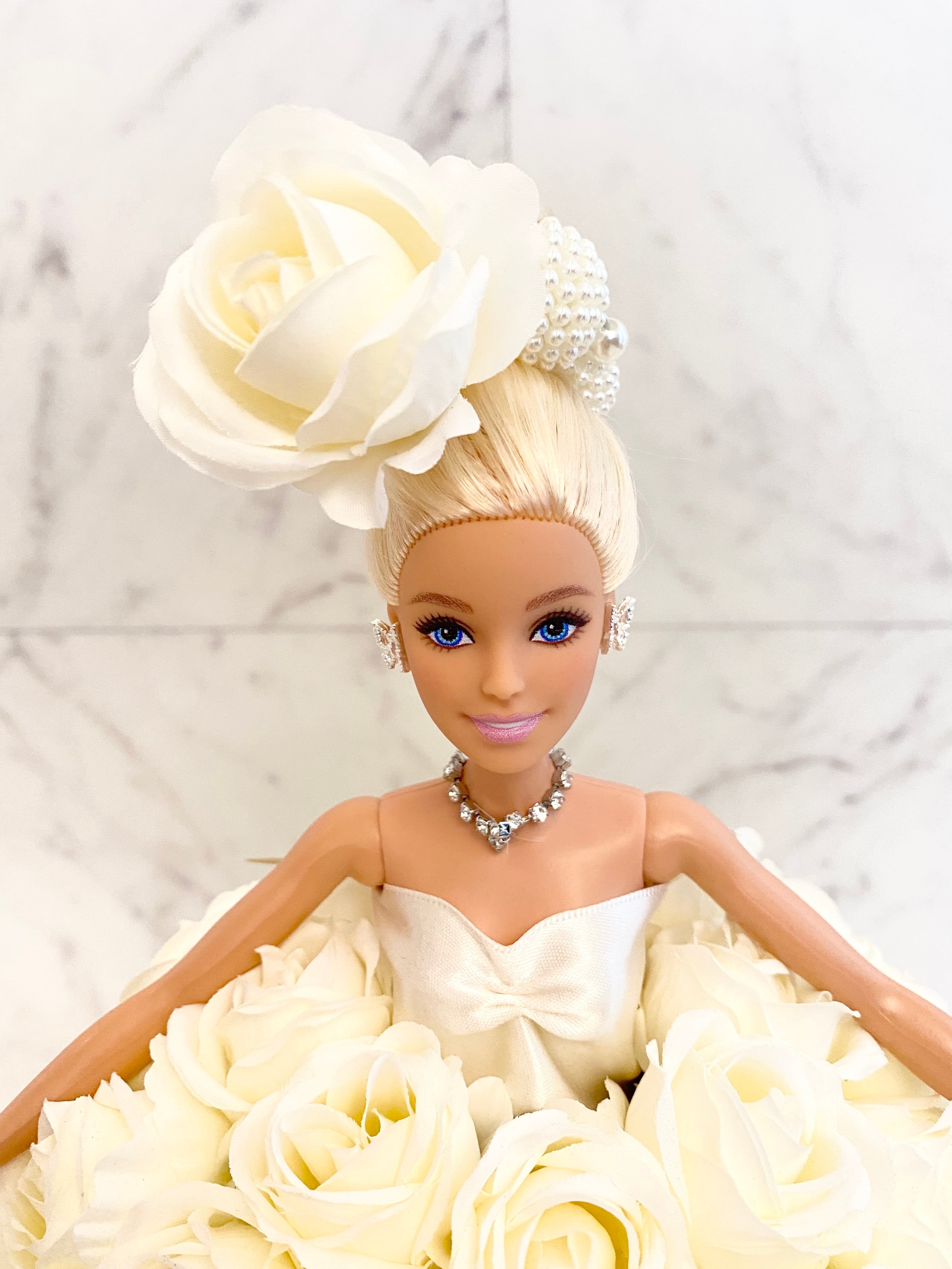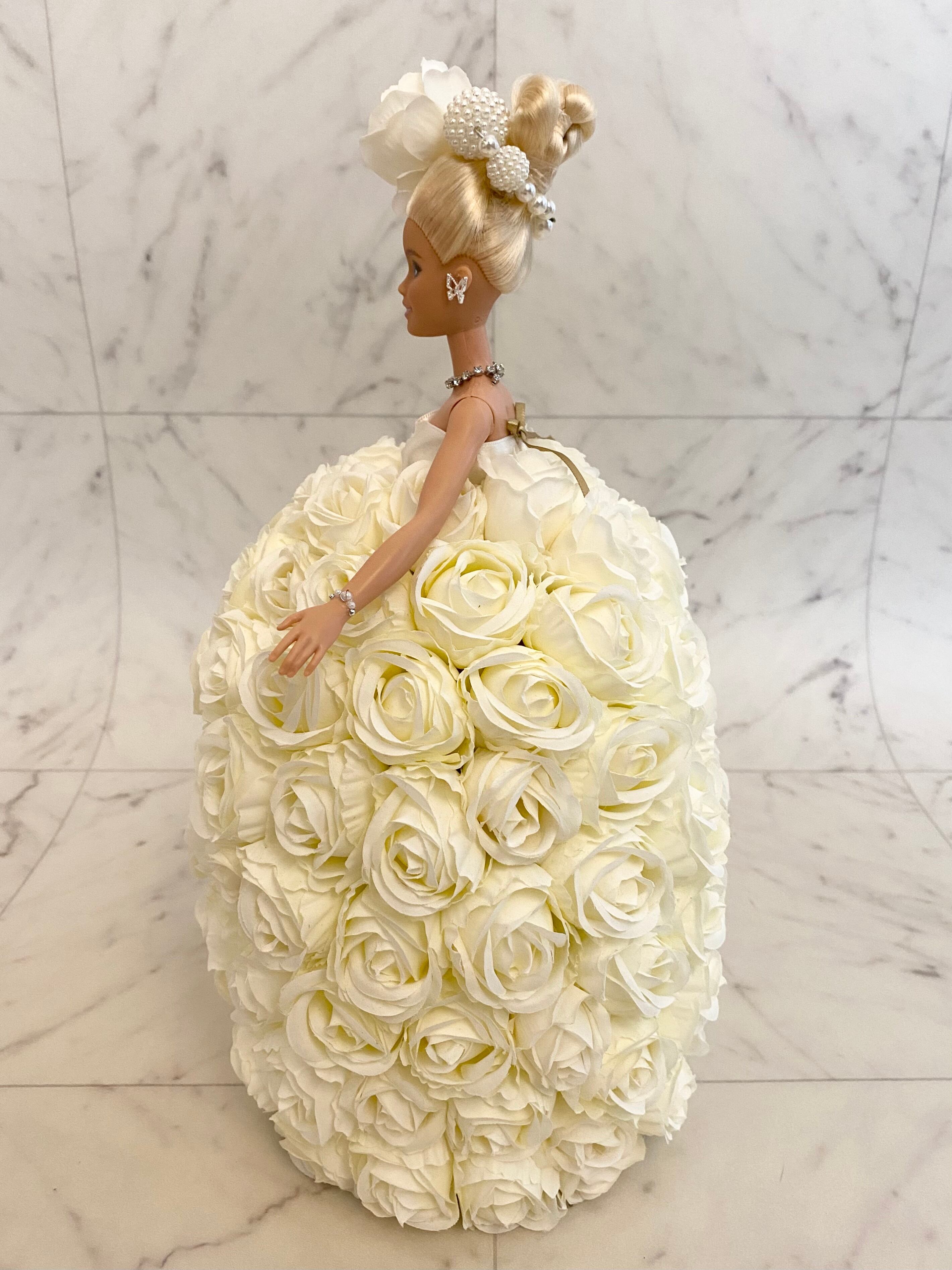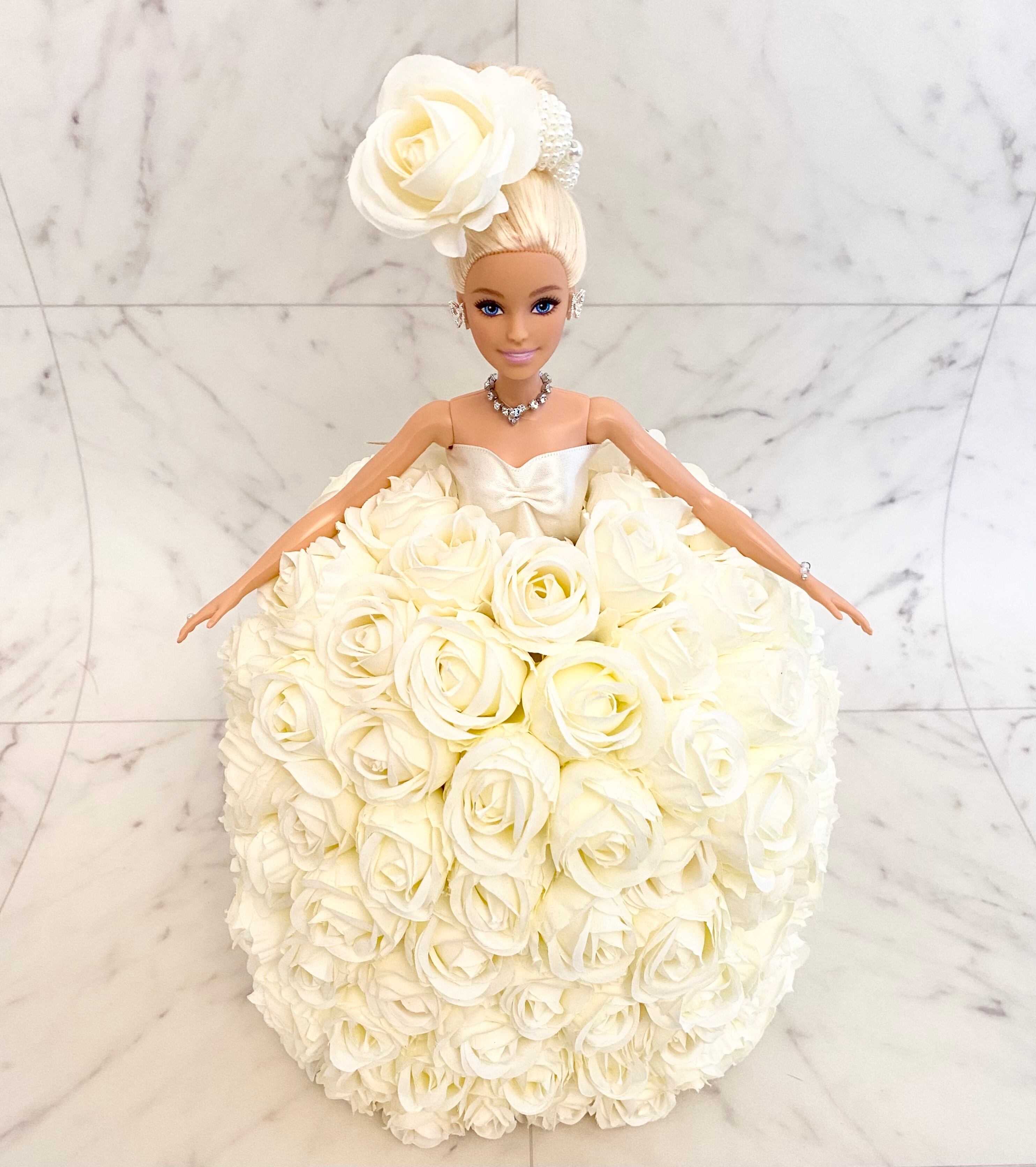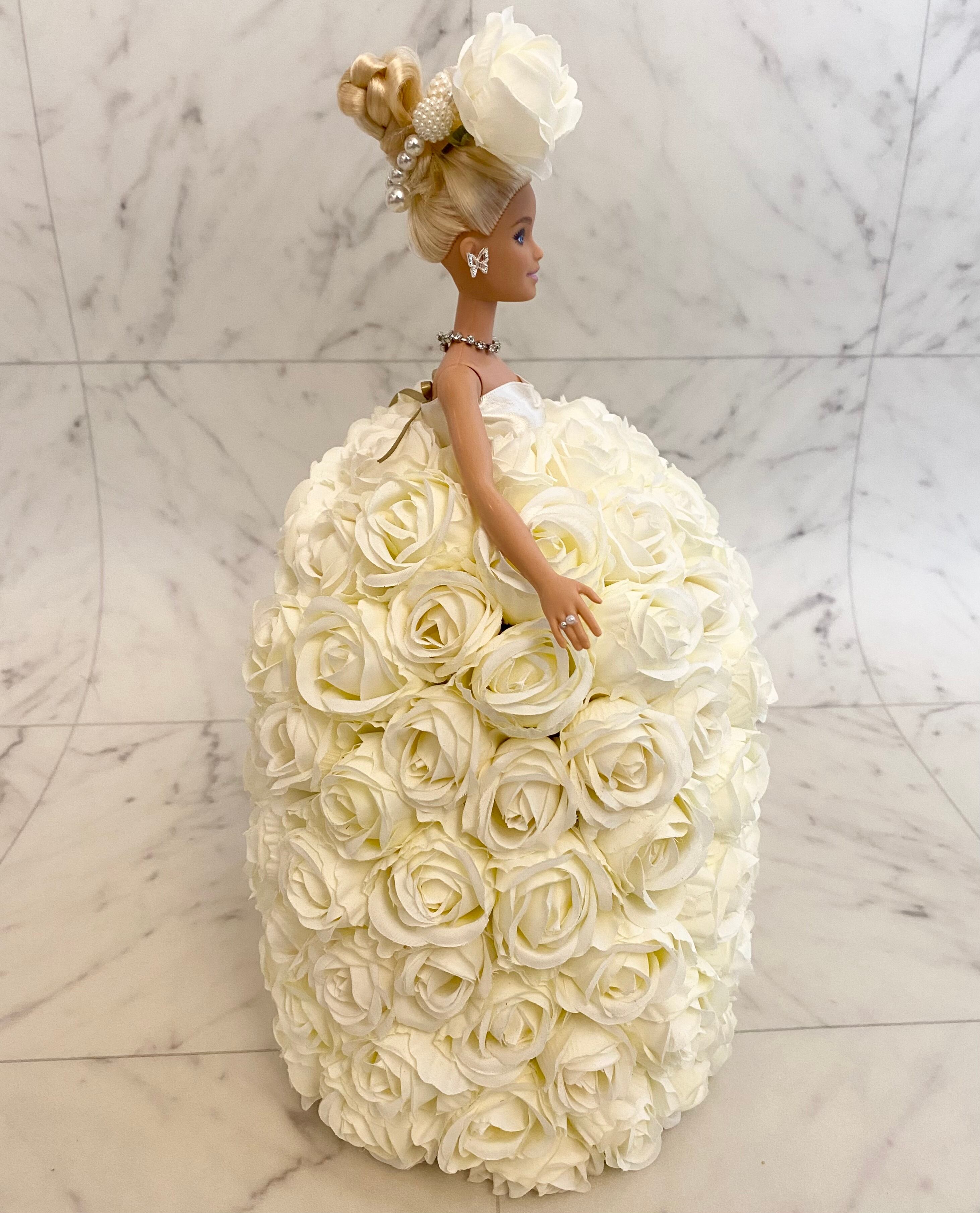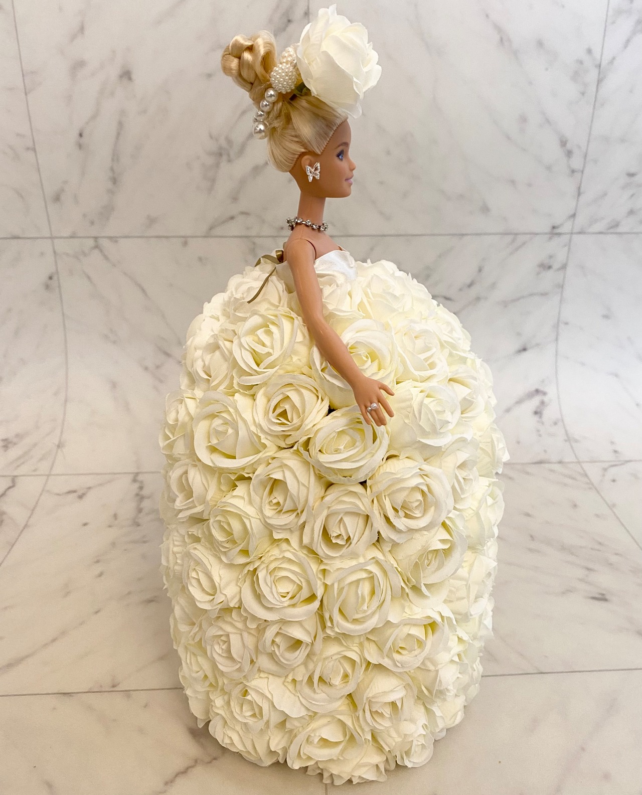 アーティフィシャルローズを贅沢に施したドレスを身に纏ったBarbieは、エレガントでゴージャス