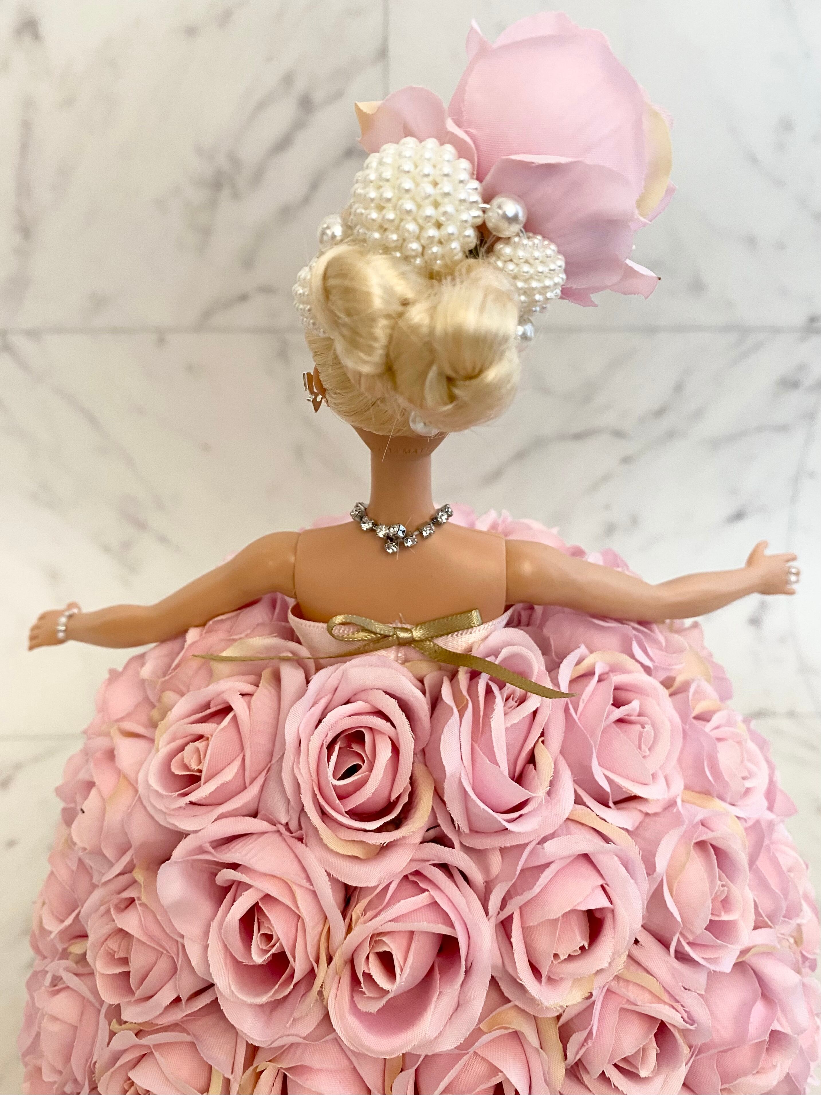 アーティフィシャルローズを贅沢に施したドレスを身に纏ったBarbieは、エレガントでゴージャス